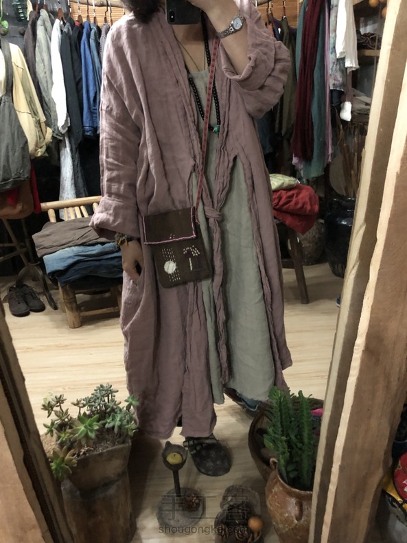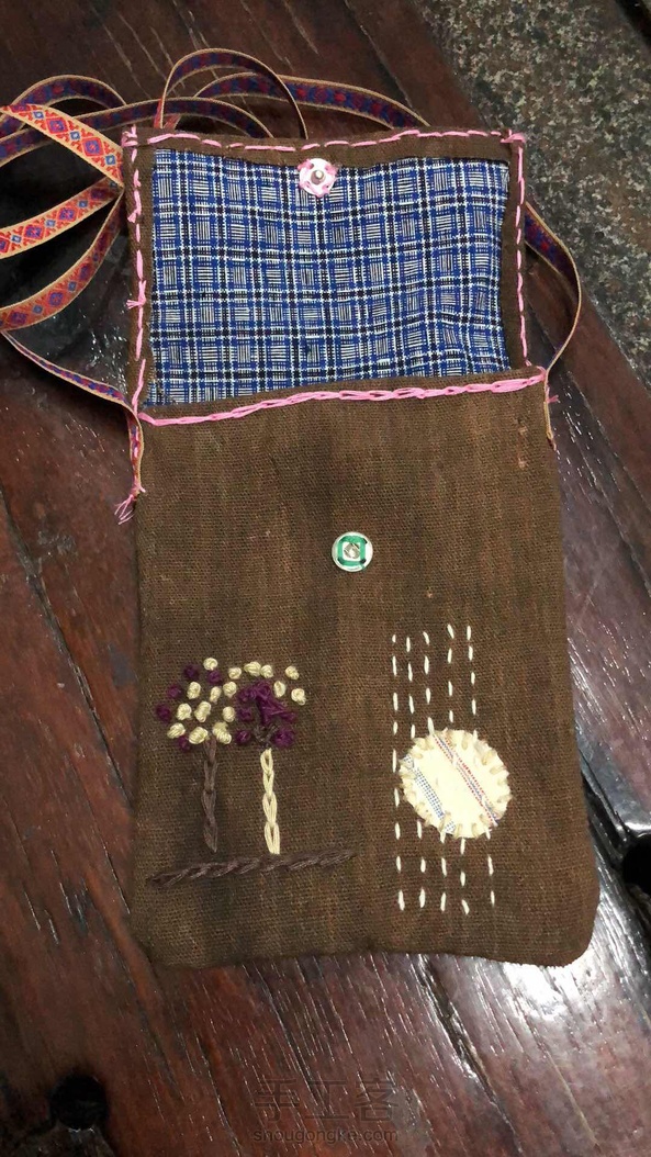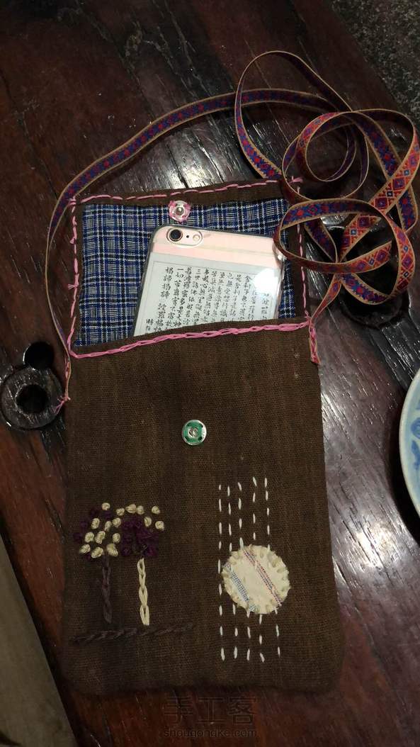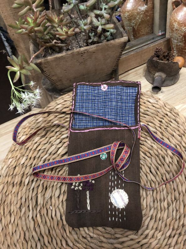 柿染布, 取青柿子,不断的提出扔进去,晾晒,反复…… 据说颜色越深越费功夫~ 朋友说,这批是染坏的布,上面有不规则的黑色, 而我恰恰喜欢极了, 喜欢它的斑驳和沧桑, 像极了我们的人生! 手工制作,一针一线缝制…… 配以漂亮的彩色丝带! 朋友说,电机子放那儿不用,把双弹琴的手戳的伤痕累累~ 喜欢,就是这么的不顾一切! 夏天出门,喜欢背着个小包晃来晃去, 一个手机解决一切的年代, 我们不用再装着大钱包,一堆的银行卡了, 解放,从轻松开始~ 尺寸:宽14高20背带长133. 感谢来过~ 感恩陪伴~