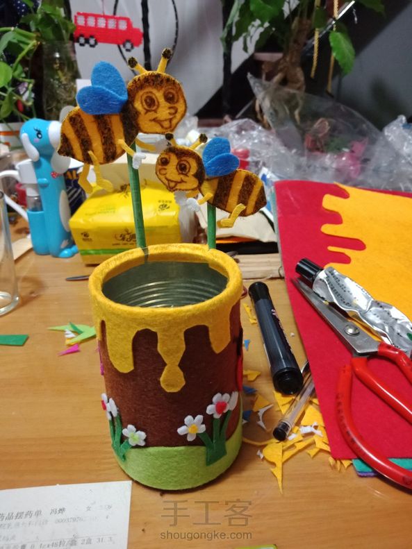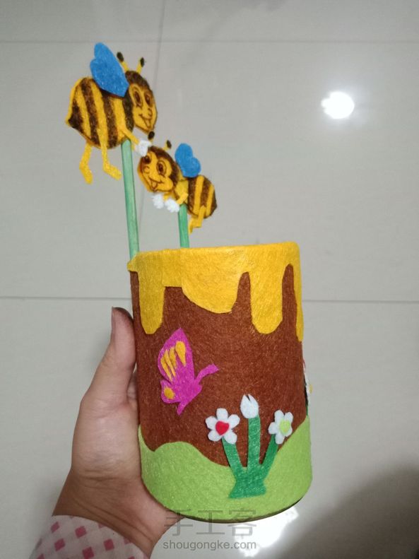 亲子手工,旧物改造小笔筒。