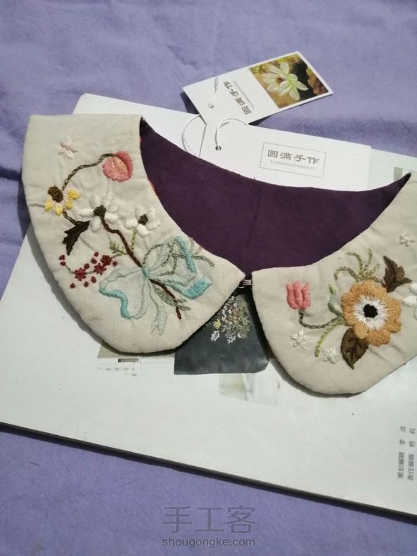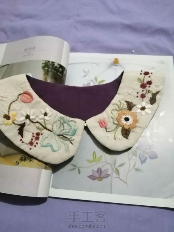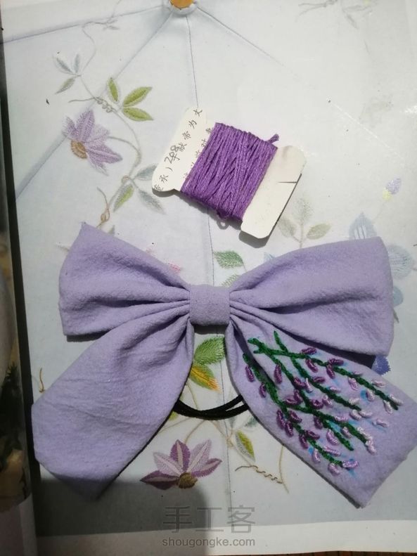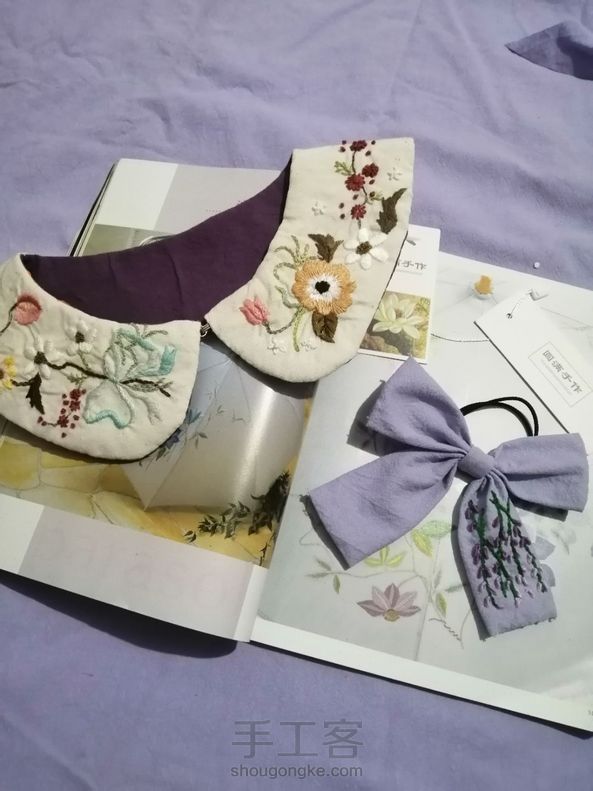 做了一个刺绣领子和一个薰衣草蝴蝶结