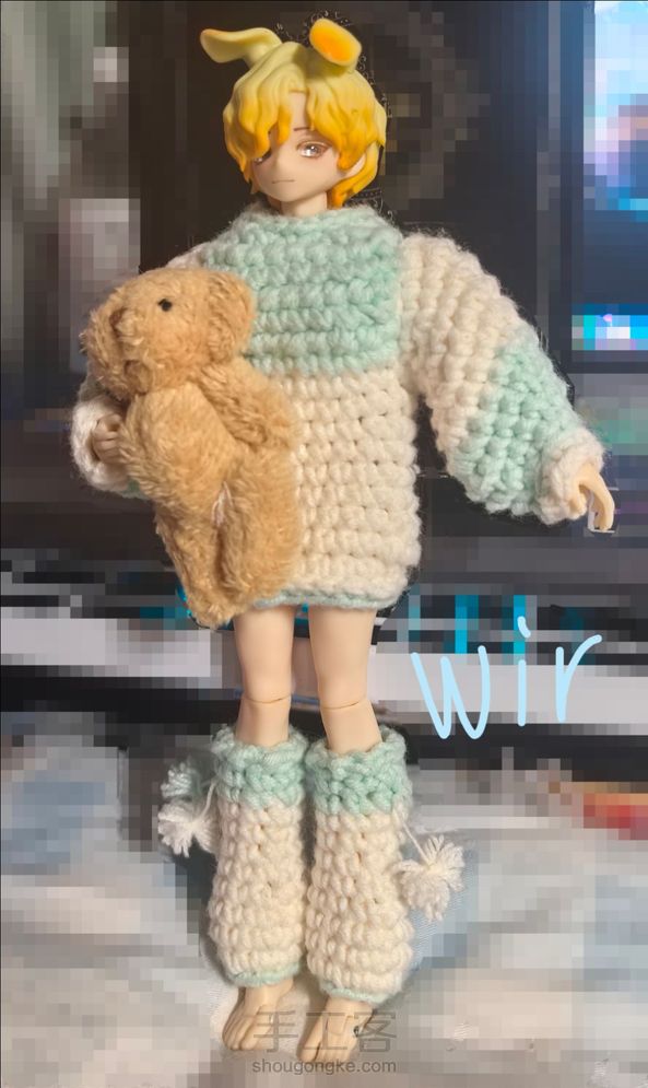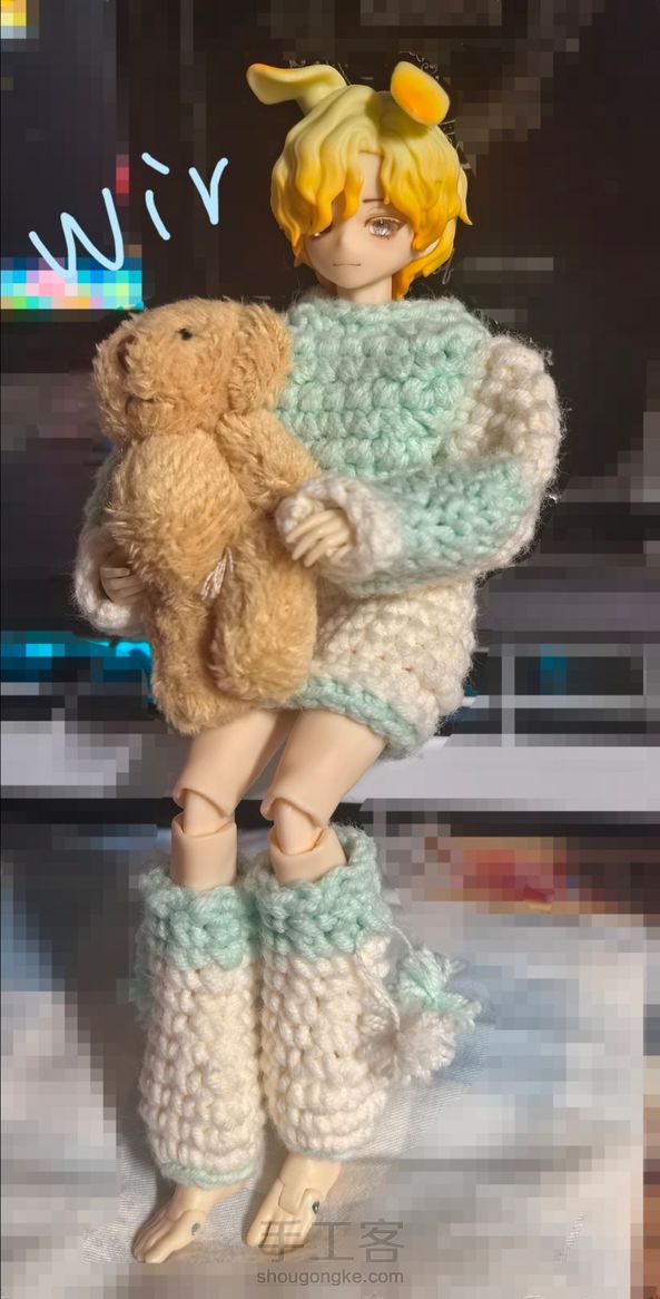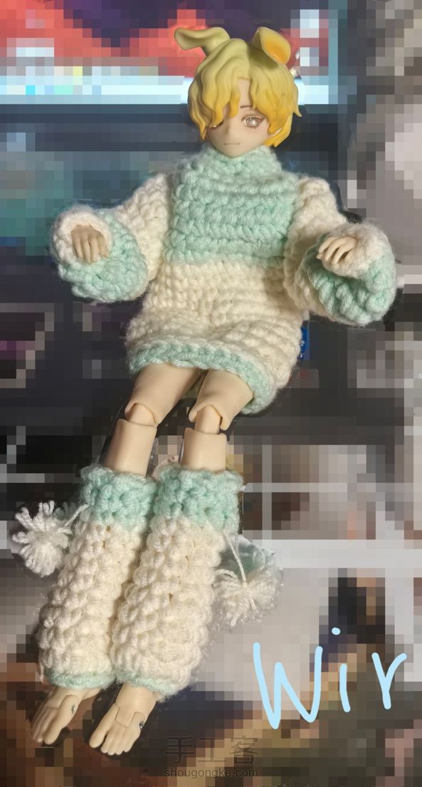 【拼色毛衣+腿套】钩针编织版过程存留🧶 西西里,交响诗体适用(毛衣对交响诗来说很大,袖子和毛衣本体部分各减三圈为最佳,但我没拍照,因为我没改_(:з」∠)_) 2.0mm钩针,四股棉 缺点:套头版,需要拆头壳,略微难穿 并不算精致的完美衣物,但很可爱