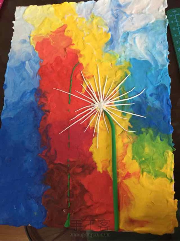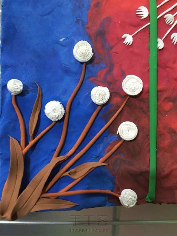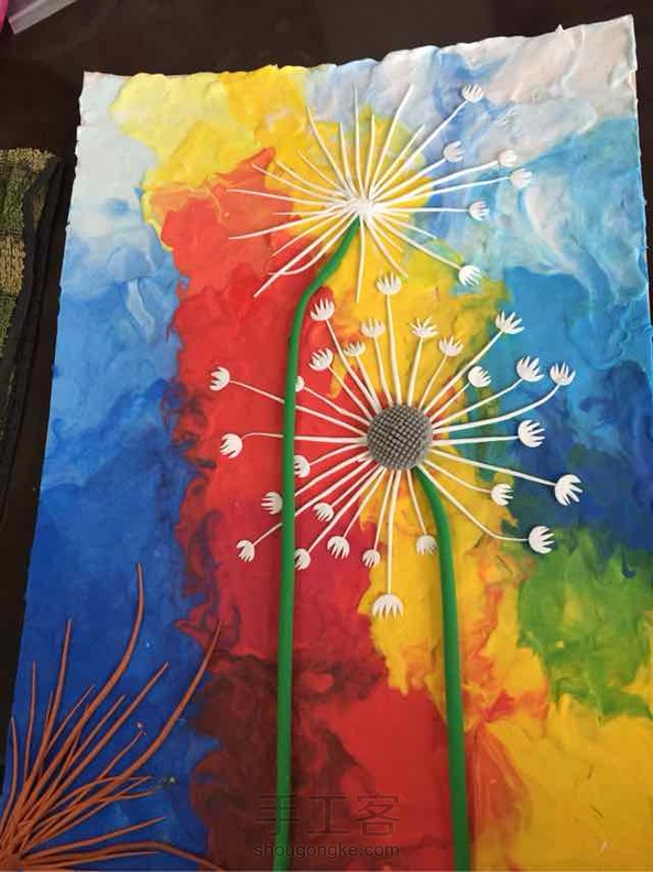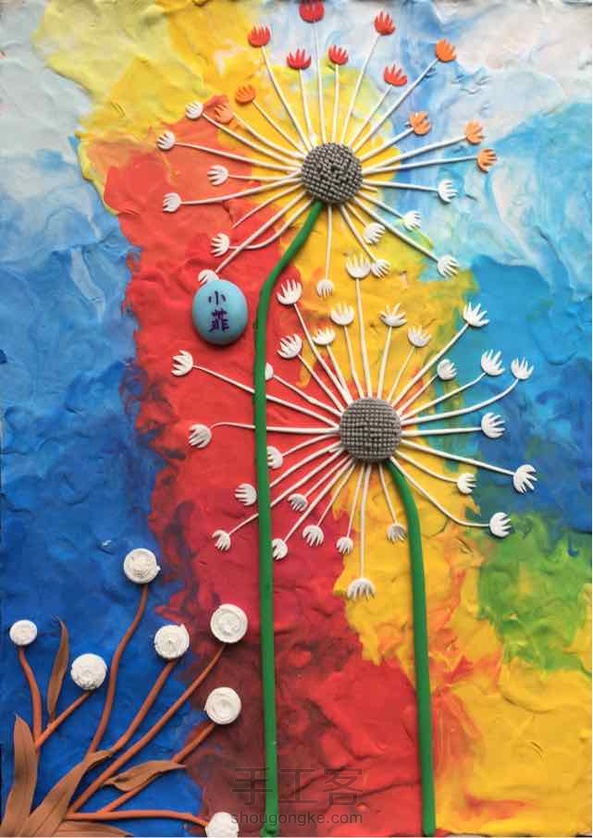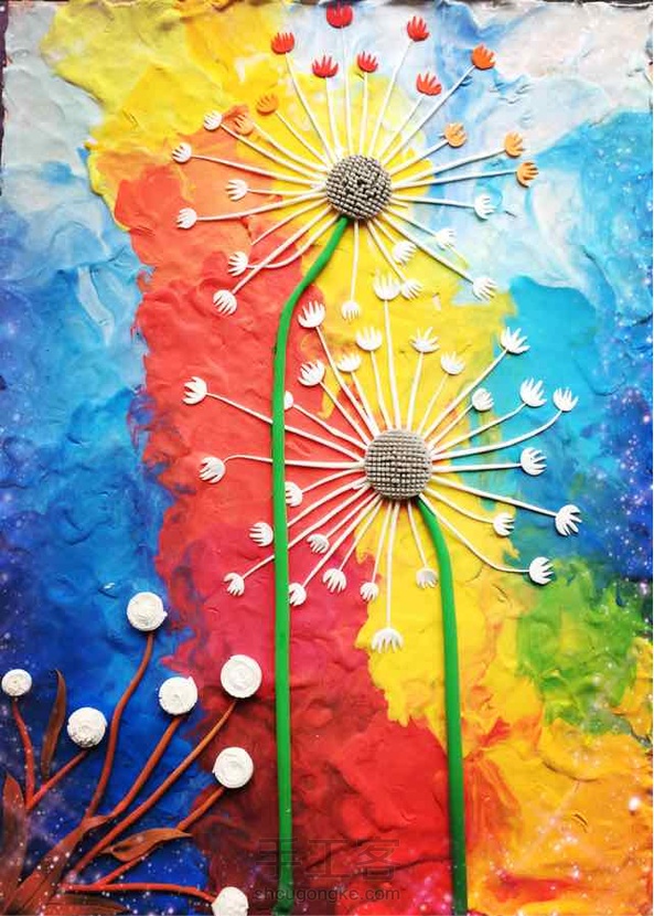 远方的蒲公英,是看到一副油画产生的灵感,很想用彩泥作出油画的质感