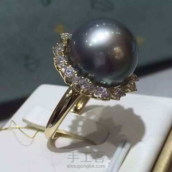 朋友来订珠,大溪地珍珠,15.6mm正圆强光无瑕珠子镶嵌14黄金戒托,款式简单把珠子的大气彰显的淋漓精致。—by山谷美好手作分享。