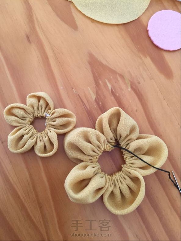 快过年啦,家里有小公主的妈妈们,可以亲手做一朵小花给宝贝啊,可以戴在小辫子上,也可以直接缝在衣服上,很简单,需要的材料也很简单,没有小珠子的,可以用扣子代替。