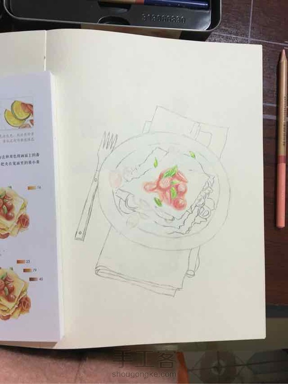 小猪蹄:形打很很棒的,彩铅卷细点,总保护尖细笔尖,然后细致点慢慢上色,不要急着完成,好比那个果果,象素描一样用色上出明暗才会立体