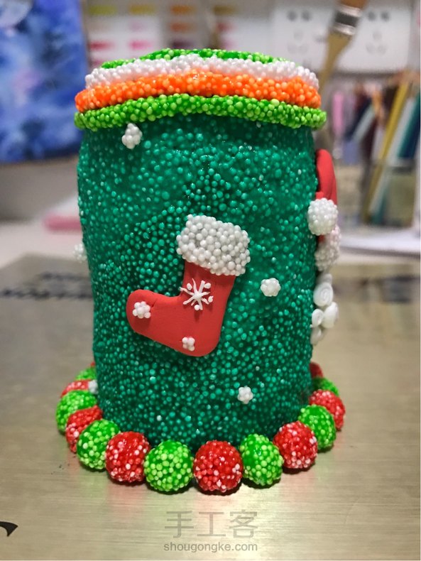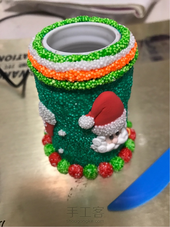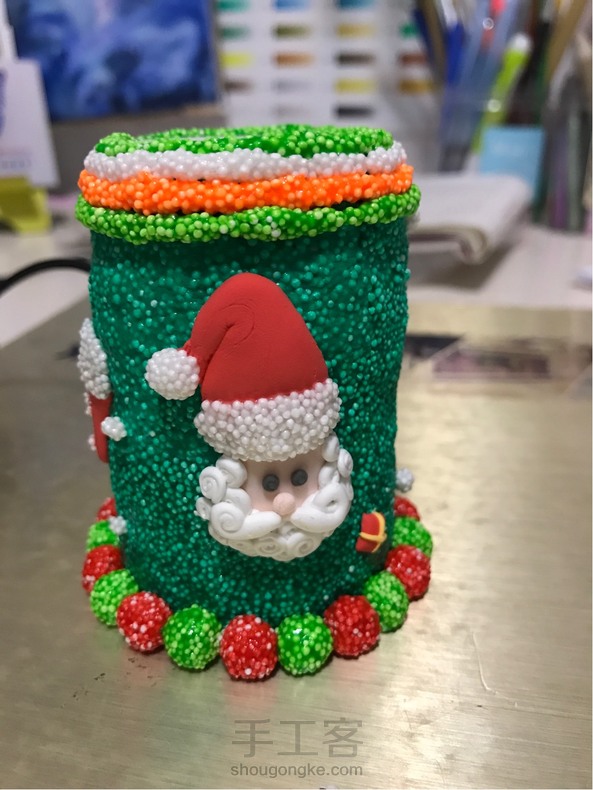 用药格子还要了一个笔筒,仿照小菲的圣诞老人作品,改良后的作品……