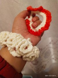 钩针发圈,手上捉着是大肠圈,手腕套的是加了一圈花样的。线比较粗,出来的效果太满了