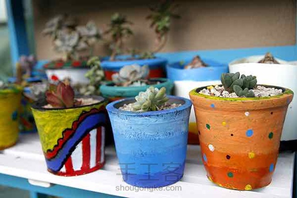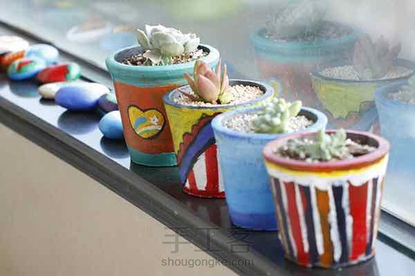 黑瓦盆改造了一下焕然一新啊。是去年用的丙烯颜料画的,现在颜色还很新哦。