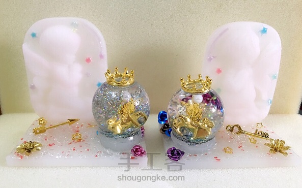 情侣桌摆,成对的天使磨砂板➕独角兽流沙水晶球