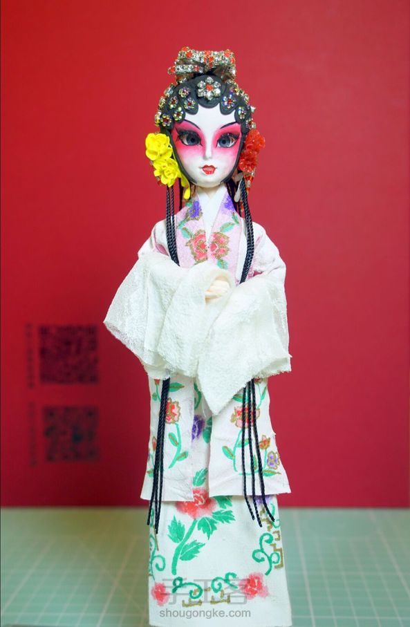 【戏曲手办·昆曲娃娃】粘土做的戏曲手办娃娃,用了各种粘土,包括液体粘土,娃头妆面是按照戏曲俊扮的步骤,头面用水钻和钻条点上去的,尽量参照实物了,穿的女帔和马面裙,还缝了线帘子,可以说真人用的什么材料娃娃就尽量用什么材料,做了一周,太累了!