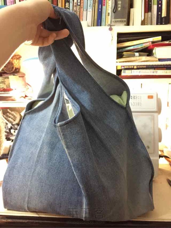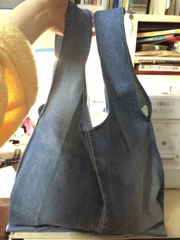 牛仔裤改的购物袋,还是丑。