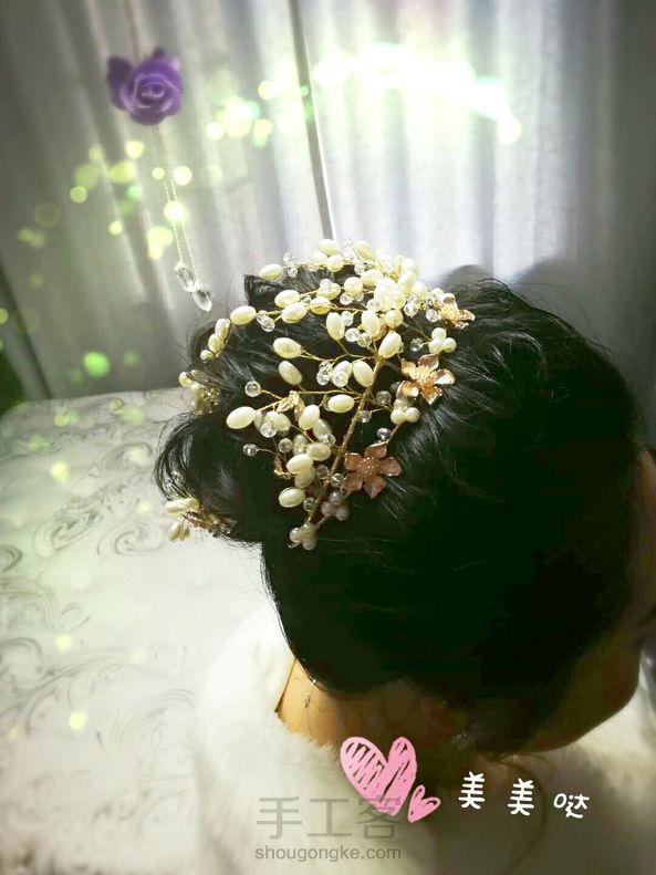 新娘头饰——第一次做皇冠,造型还不错,只是材料不是很满意,珍珠太大颗了,没做出想象中的效果,还需要多研究研究
