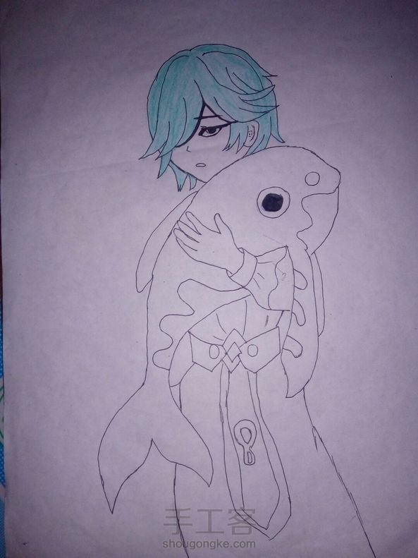 看我钓一条大鱼来给大家助助兴!一边钓一边吃可真开心。