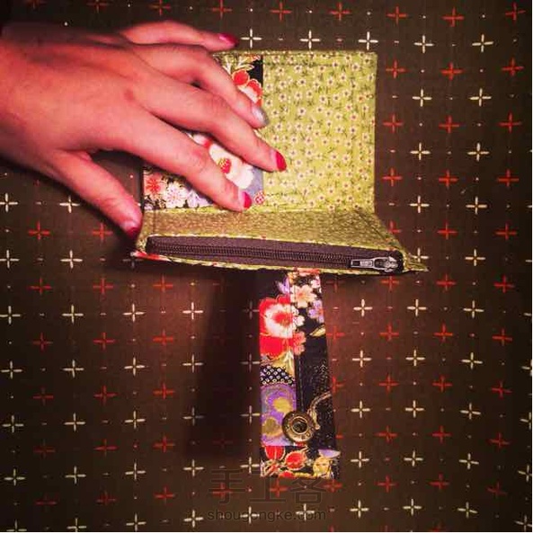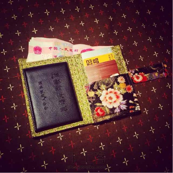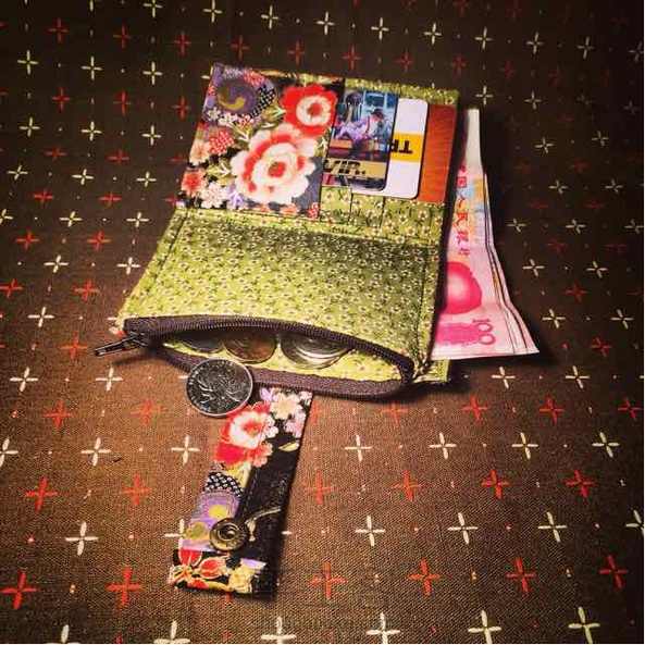 磐石工坊新品,烫金樱鼓竹枝绣球两折短钱包,带1大钞位+6卡槽+1驾照证件夹层+1拉链零钱袋,尺寸:13 x 9 x 3cm(展开尺寸:13 x 18 x 3cm。手工测量,略有出入)