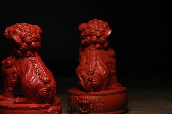 【朱红·纡朱怀金】 朱砂小重器 对石狮 左:爪下为球 象征着统一寰宇和无上权力 右:爪下为幼 象征着子孙绵延 一只张嘴一只闭口 想着你招财守财 中国传统守护神 守护一方平安 同时也象征着尊严地位 气场十足 选用高纯度朱砂材质 极度鸿运招财辟邪 完美雕刻工艺 非常细致 适合家庭 办公 书房摆件 尺寸70×44 总重410g (仅此一对 朱砂纯度90%➕ )