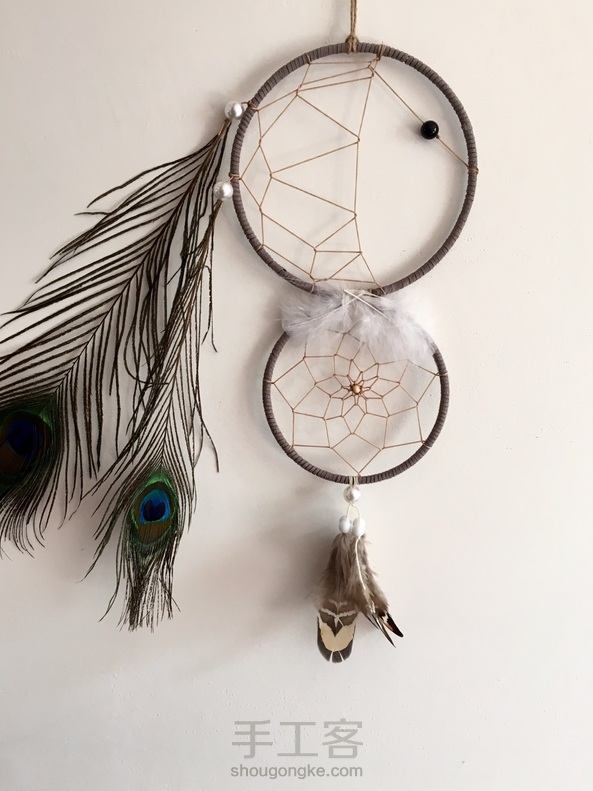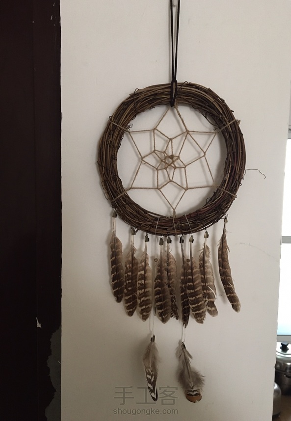 捕梦网源自18世纪,印第安人用它来捕获美丽的梦幻,让恶梦随清晨的阳光而消逝,他们相信夜晚的空气中充满着各种的梦幻,只有捕梦网能将梦过滤,把他们带入美丽的梦乡。传统的捕梦网是用树枝编成一个圆圈,用皮革绕着圆圈把它包起来,然后用牛筋线在圆圈中绕出一个网来。在牛筋线上偶尔会穿些彩色的珠子,圆圈的一端用皮革挂了一些羽毛。网的中间有一个圆洞,传说只有好梦才能通过那个洞,并顺着羽毛流下来,而恶梦会被困在网中,并随着次日的阳光灰飞烟灭,消失得无影无踪……