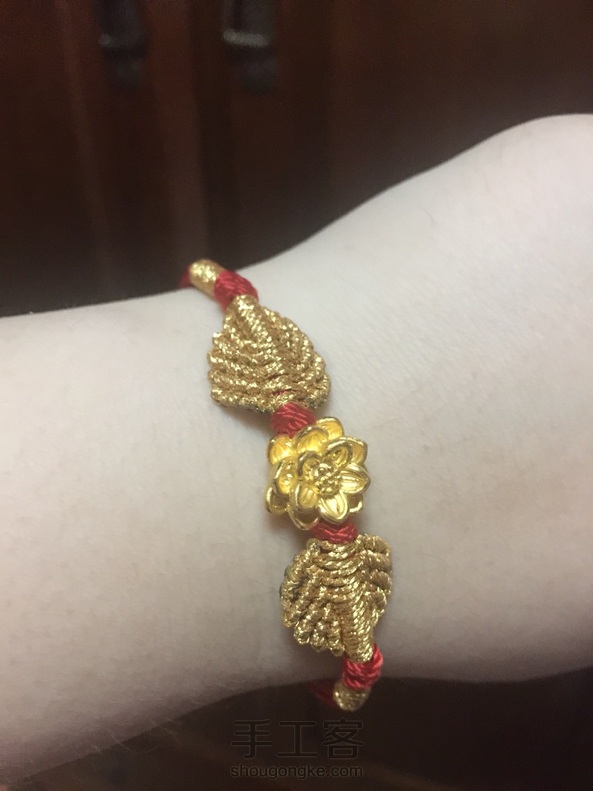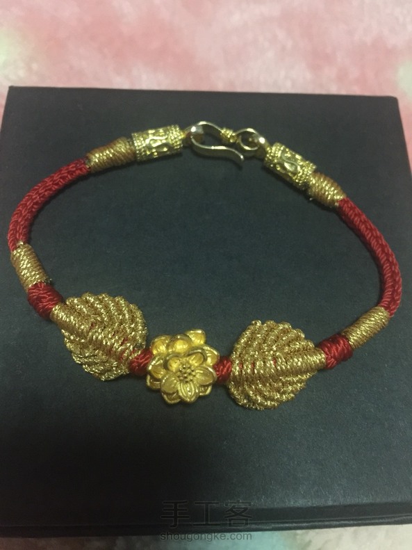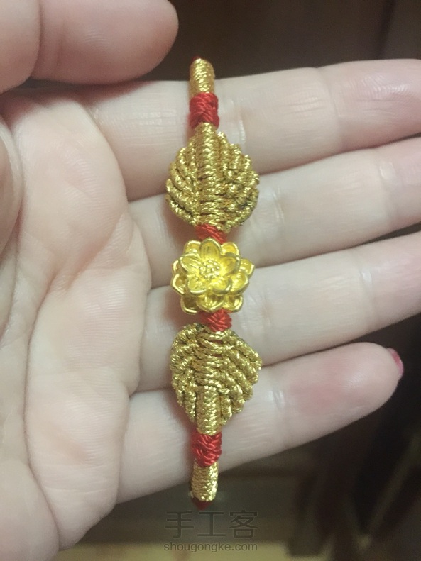 看到网上这款手绳很好看(●◡●)ノ,自己特意买了黄金莲花试着编了下……满意!喜欢💖