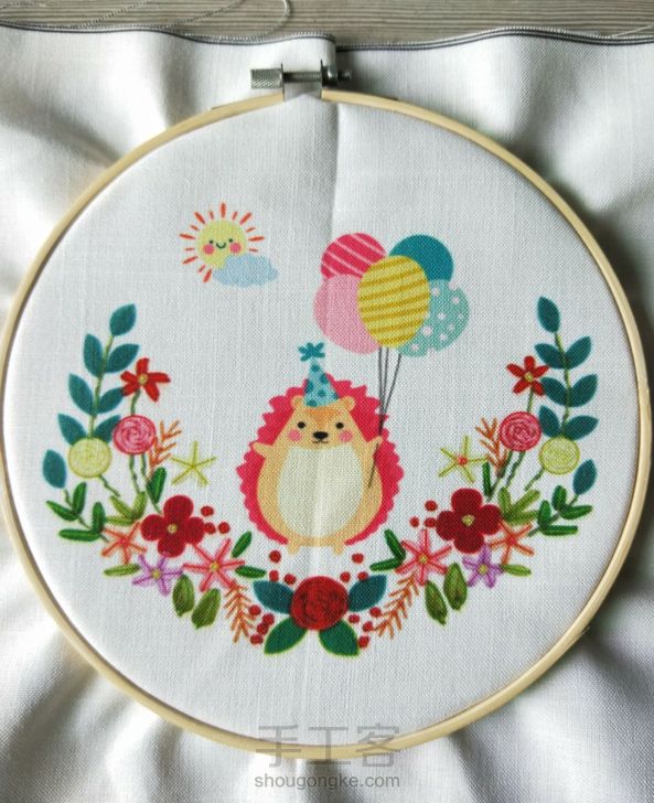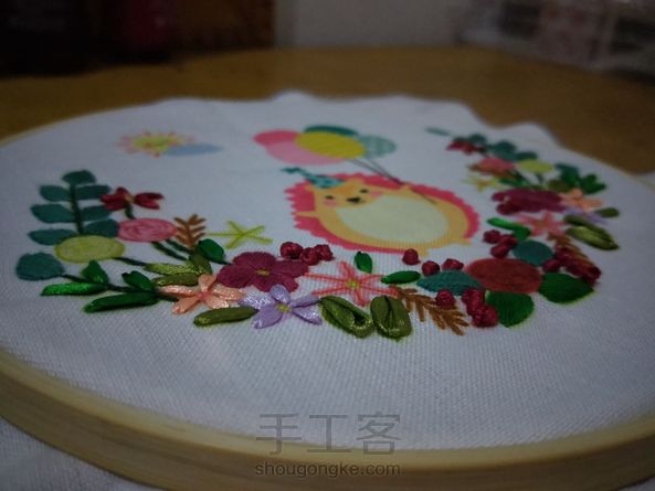 阳光小刺猬完成啦,第一次绣丝带绣,感觉玫瑰花瓣难一点,哇咔咔,打卡打卡。