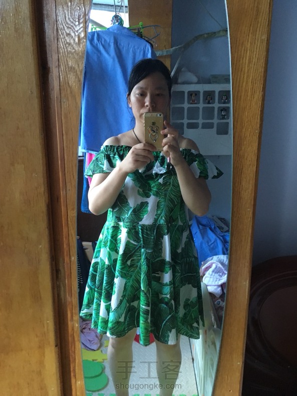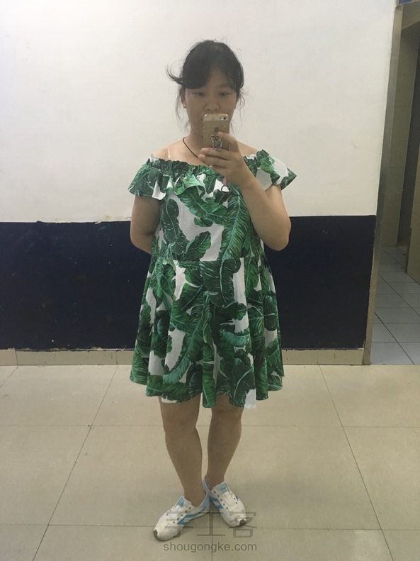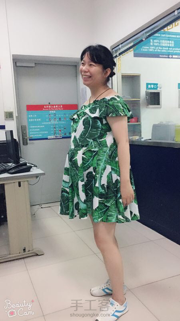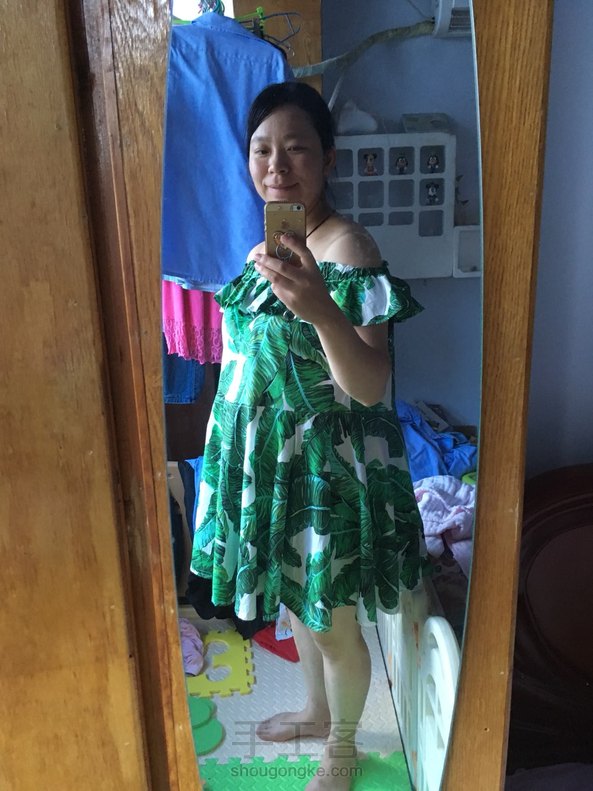 为自己做个美美哒孕妇装,自我感觉良好,同事们都说太短啦……其实穿的时候露肩的,在公司不好意思往下拉的,怕说孕妇太性感啦