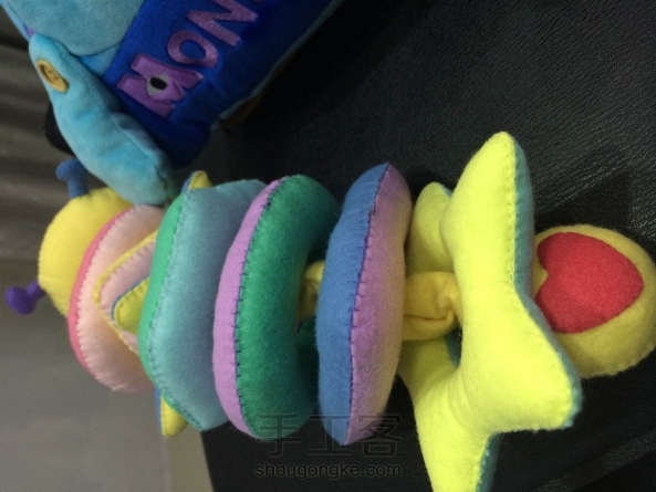 五彩毛毛虫玩具,可以任意拆卸,宝宝可以学习识别不同形状和色彩,妈咪做的玩具,满满都是爱!