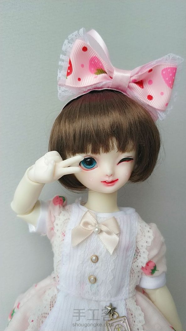 6分bjd娃衣 -草莓泡泡- 其实最不喜欢缝袖子了 泡泡袖真的好麻烦啊_(:ᗤ」ㄥ)_ 教程已在主页更新需要的朋友可以参考~ 模特:小叶子(老余自制枯叶)