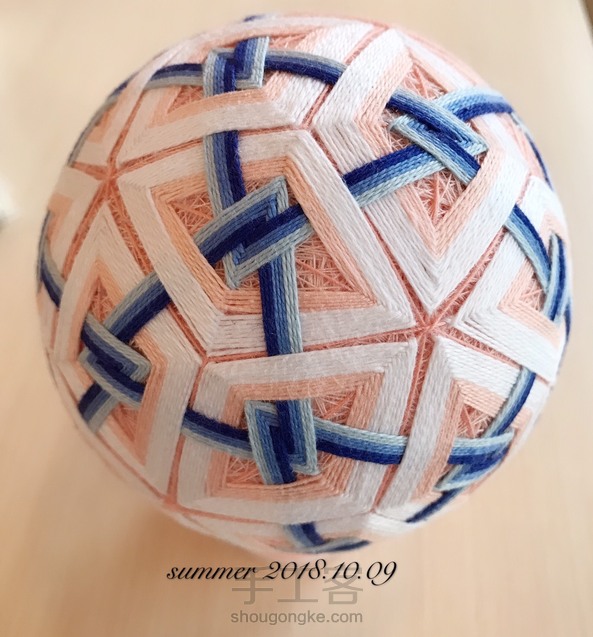 LH.Handcraft:耐心地去分球,例如组10,所有珠针定位后,还要用尺去测量,相邻两珠针的距离都要相等,否则要微调。