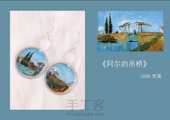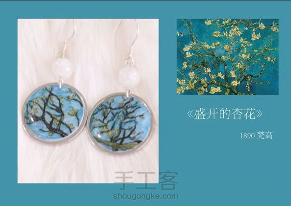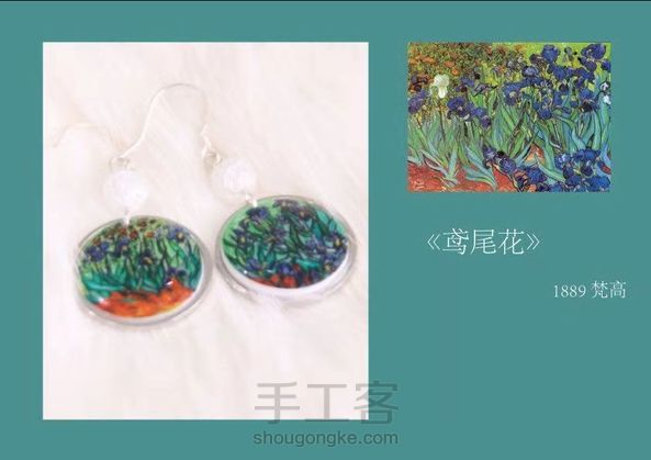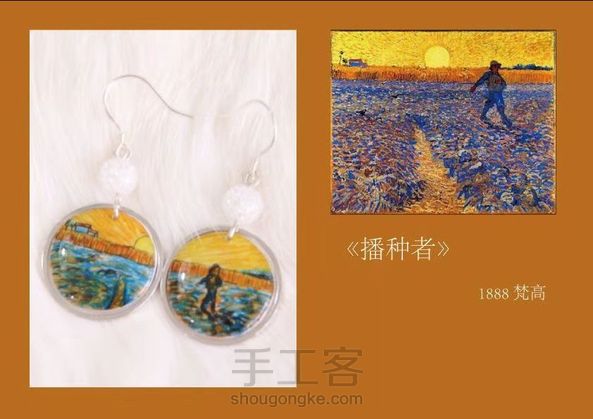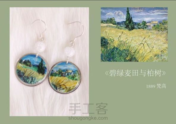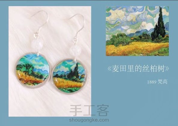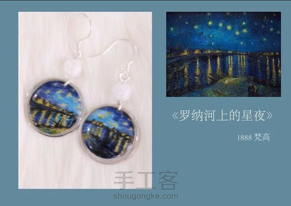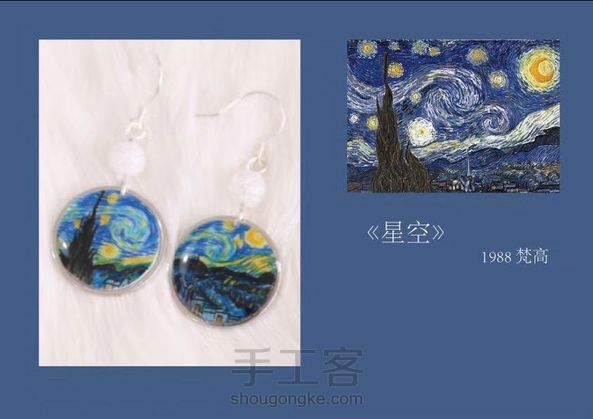 世界名画耳畔戴 原创 手绘「至爱梵高」系列耳坠 耳钩 925银 配石 爆花玻璃石