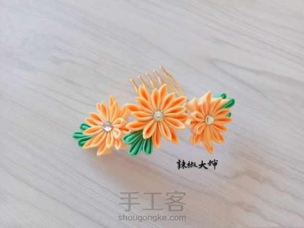 细工剑菊发梳+细工梅花胸针~ 都是用最普通的棉布制作完成~这个质感嘛,还不太好~下次用电力纺试试~