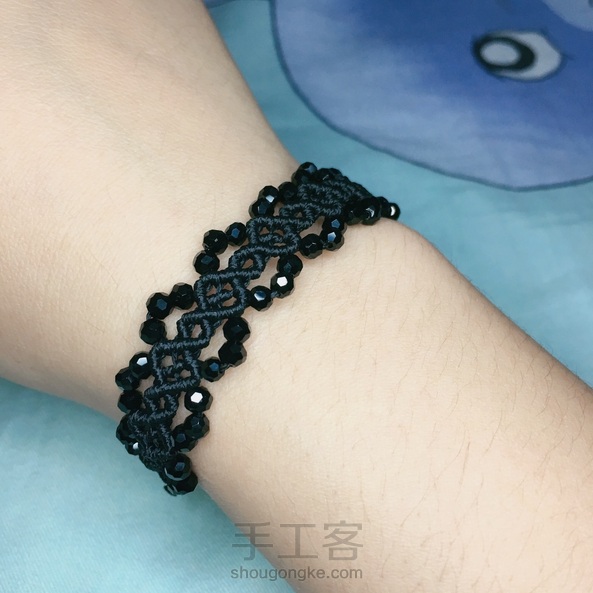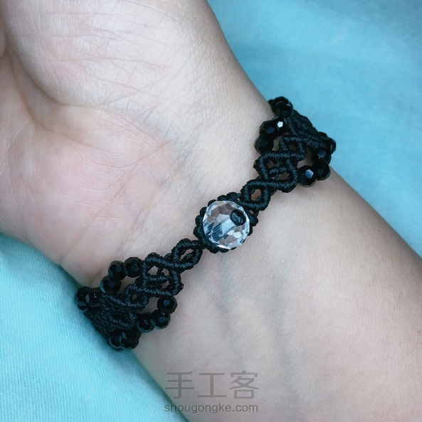 黑尖晶+白水晶尾扣手链 布灵布灵好闪哦