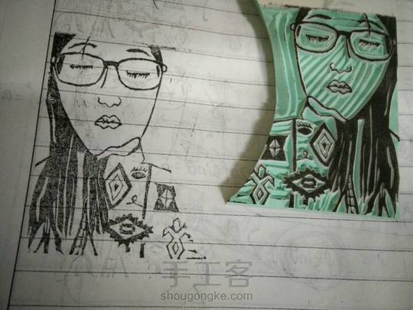 人物刻章,刻得很不成功,觉得由照片改成黑白线条很有难度,一直以来人物肖像画的都很僵硬T.T