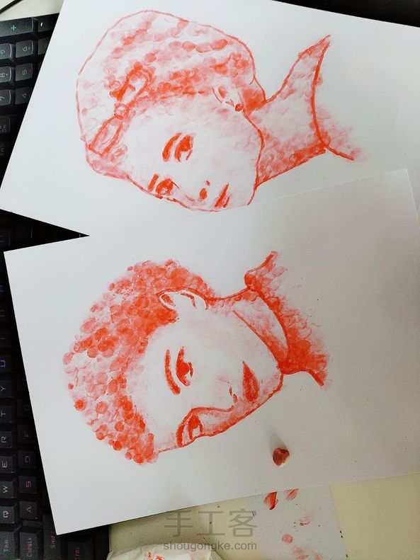 之前有见网上有人画过指纹画,然后用快过期的口红作画,画了个低配版,简直是口红快速消耗大法,画完塑封起来也可以保存好久。 (友情提示,不会画画的朋友可以打出喜欢的线稿再用口红填色,口红有一定油脂性在里面,最好一次性成型,用太多次橡皮修改效果反而会很差)