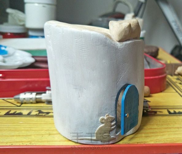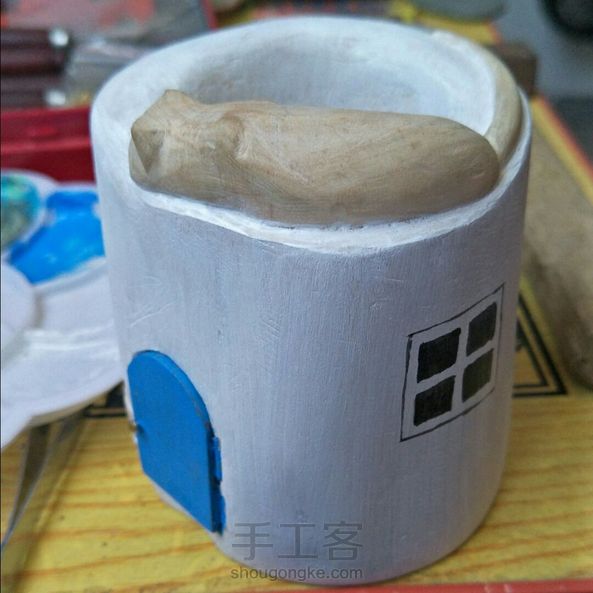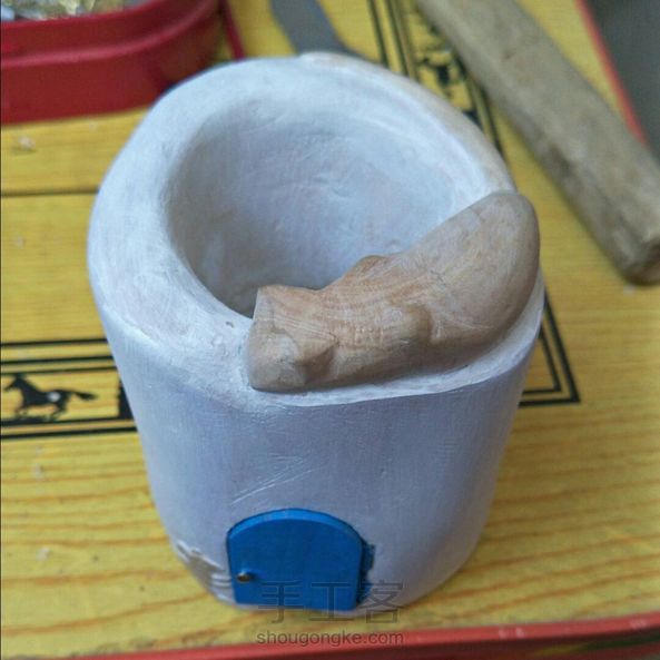 一块有窟窿的木头,削一个笔筒,守门待鼠😂