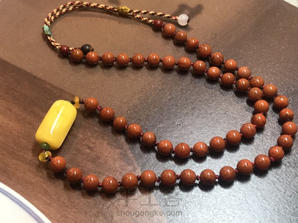 这样配以也很不错呢,南红玛瑙配满蜜鸡油黄蜜蜡,蜡是自己手工磨的