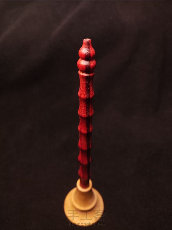 木簪:人生大事伴侣 材料:血檀、小叶黄杨。 长度:19㎝。 百般乐器,唢呐为王,不是升仙,就是拜堂,这个外来的乐器出奇地适应中国的文化,几乎能参与到中国人生命中的每一件大事中去,于是这支簪子起名“人生大事伴侣”。不记得是看到哪位做过的唢呐簪子,遍寻不到,只得凭着记忆自行仿制一支。