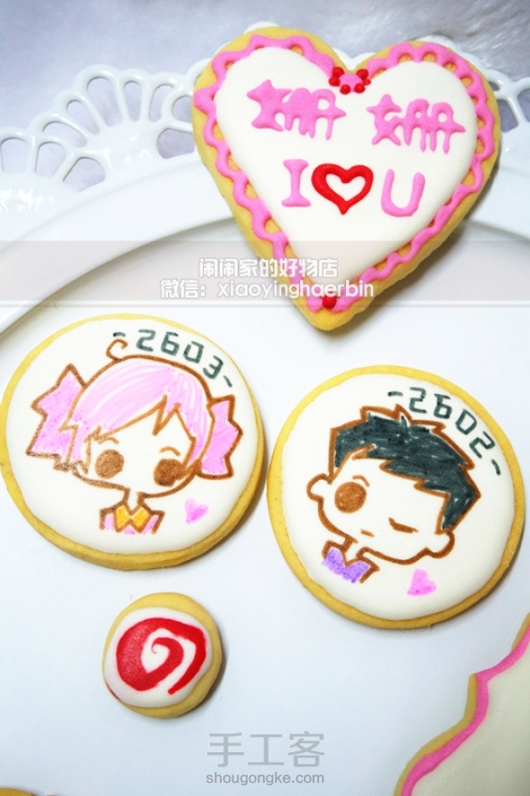 我们恋爱的主题糖霜手绘饼干,是为客人定制的纪念他们相识三十天的一份特别的礼物,有心的一位男生,把两个人之间的故事讲给我听,我也为他们画了他们相识的画面还有重要的时刻,这是专属于他们两个人的“密码”很多内容是只有他们两个人才能看懂的。