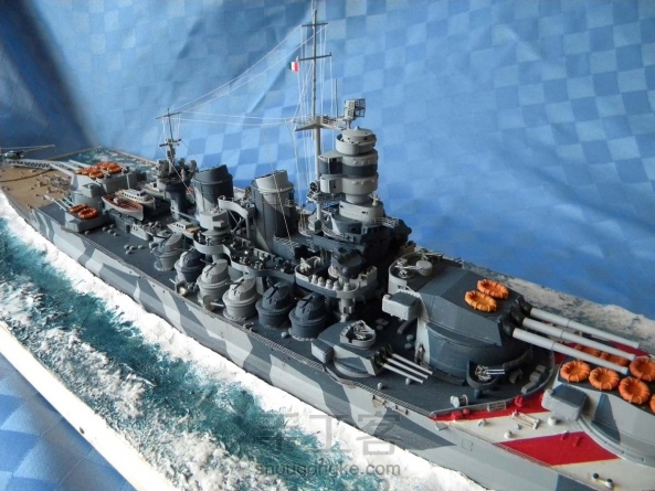 【网络分享】意大利"Roma(罗马)"号战列舰-Phil Reeder作品。“罗马号”是意大利维托里奥·维内托级战列舰是建造的一艘改进型战列舰,排水量高达35000吨,该舰也是二战时意大利最后一艘服役的主力舰。