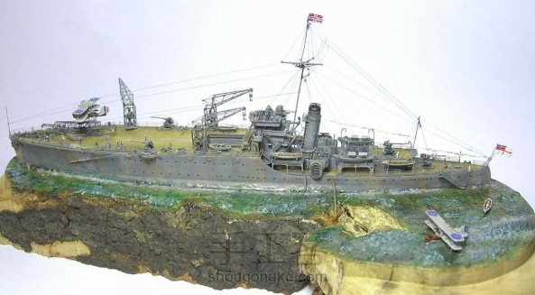 【网络分享】"信天翁"号水上飞机母舰-Katarzyna作品,是澳大利亚皇家海军的水上飞机母舰,1938年转让给英国皇家海军。舰体结构与就皇家方舟号相近--前部带有飞行甲板,机库在甲板以下。