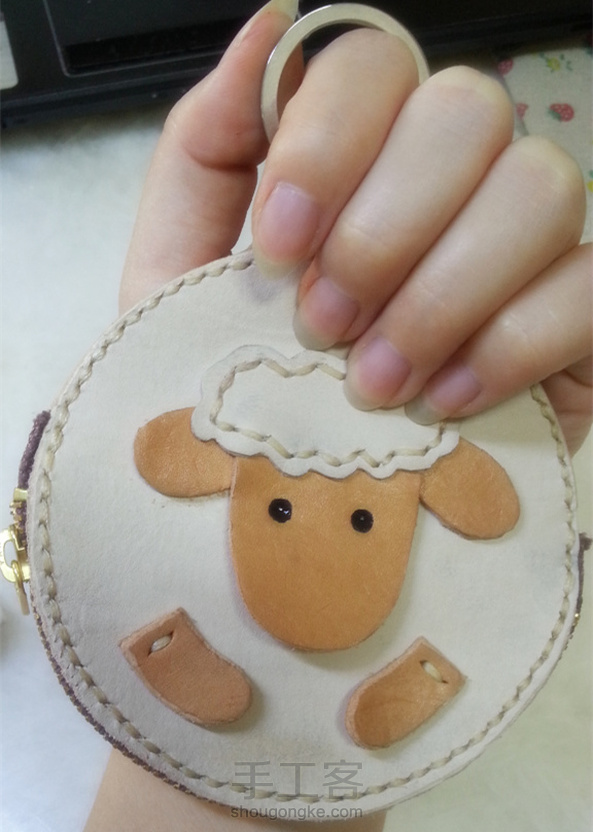 萌萌的小羊肖恩牛皮零钱包
