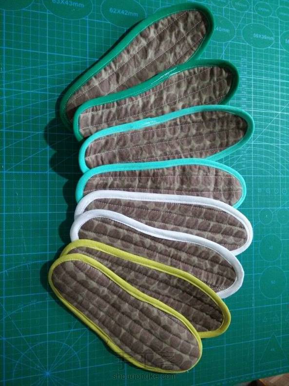 羊毛鞋垫——中间一层羊毛呢,两面各一层卡特毯夹住羊毛呢做的😄