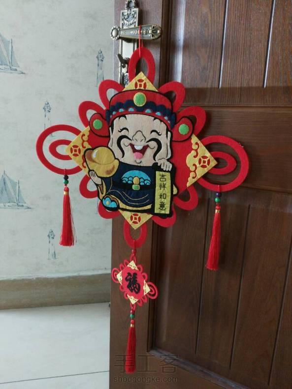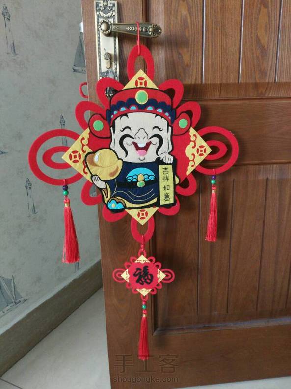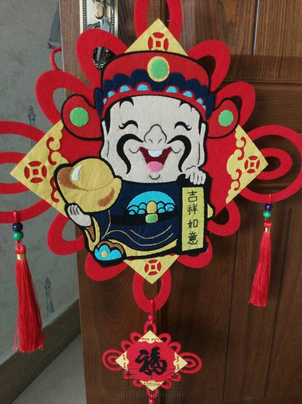 快过年了,多做几样喜气洋洋的装饰挂件,这个天降财神的中圆结有木有很有财气呀😄,还挺大的呢,有步骤图可以交流哦