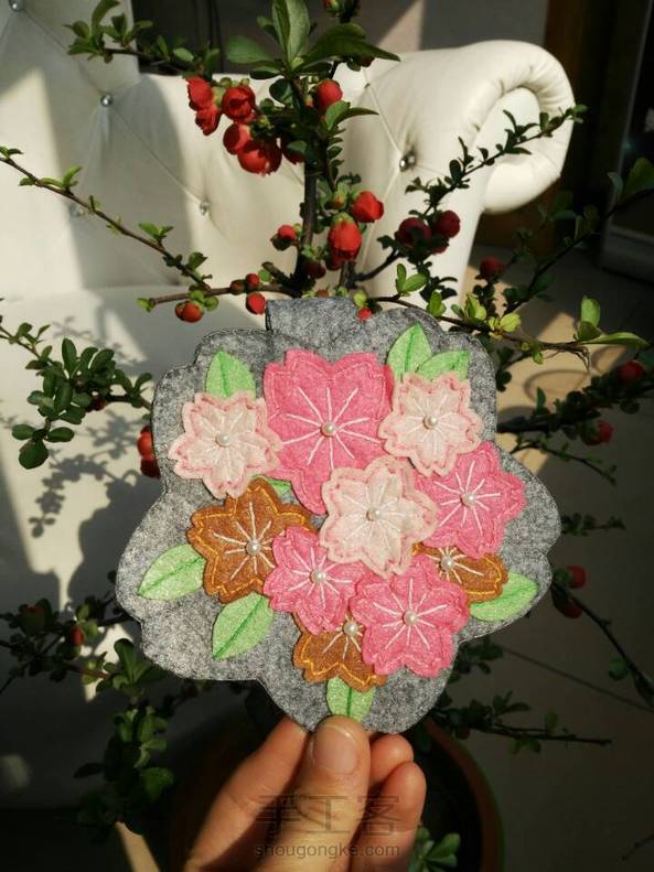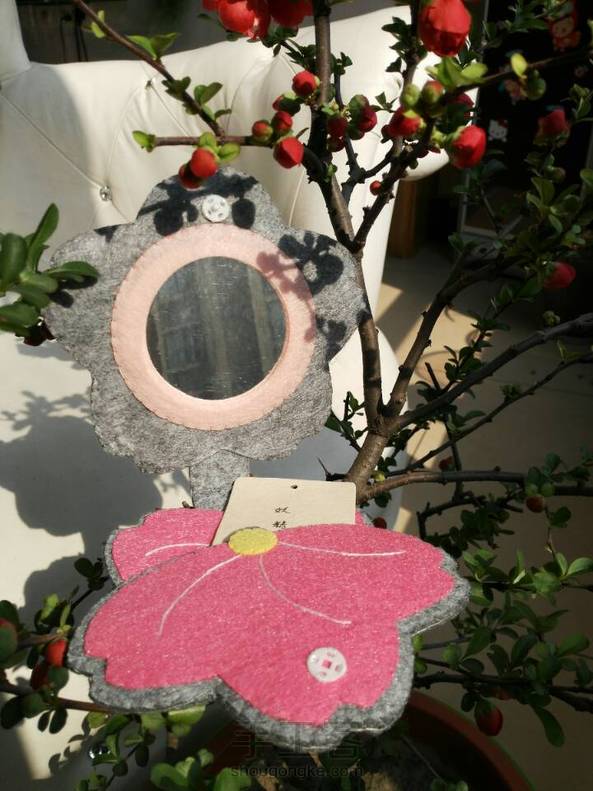 花开浪漫,MM踏青赏花必备神器,樱花随身镜,还有内侧小袋可以装MM的随身小物哦😊,喜欢的MM可以参照教程自己DlY一个哦🌹🌹🌹