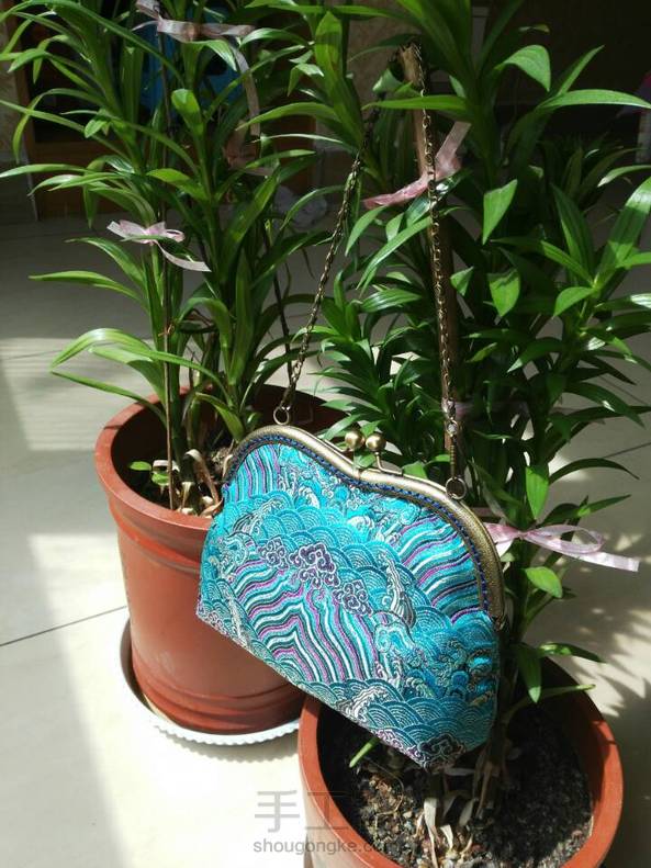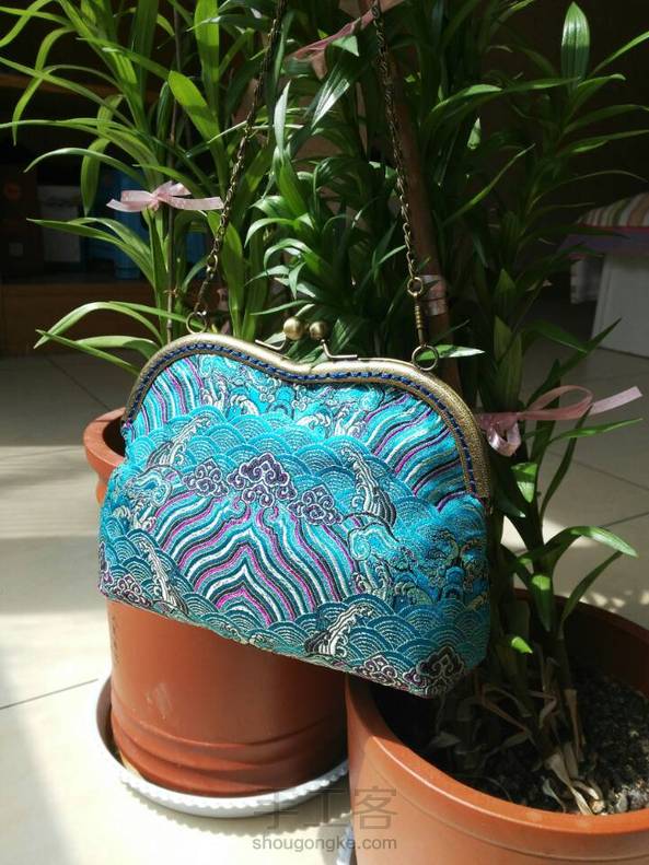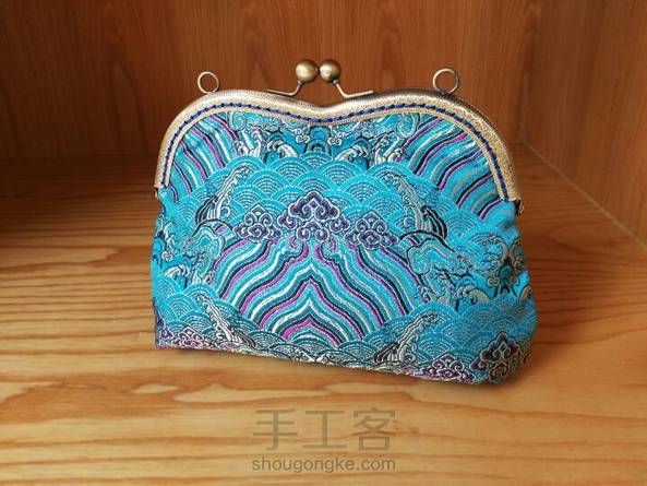 海水江崖纹的织锦缎贝壳包,口金包做起来真的要比上拉链缝包扣之类的简单,而且做出很漂漂哦,有木有