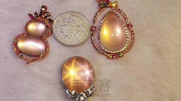 天然芙蓉石 第一张图有两个是不带星光的 我放上去是跟带星光的做一个对比 价格也就很便宜 镶嵌不是我的工 星光的原料稀少 所以每批货出来的都不多 几个而已
