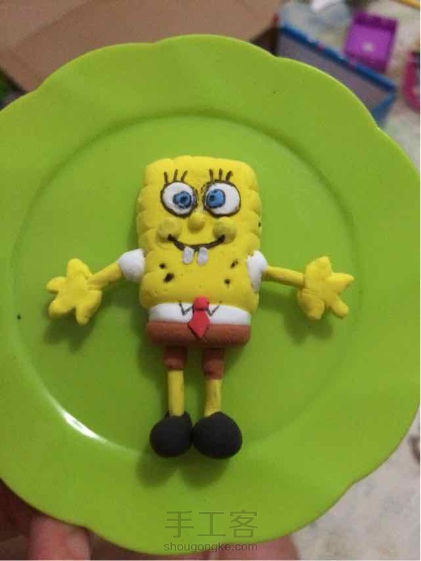 我是一枚粘土制作初学者,我的第三个成品—海绵宝宝。