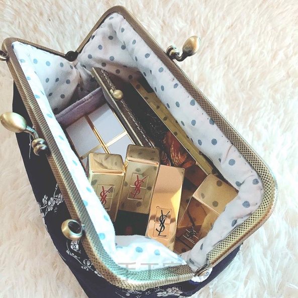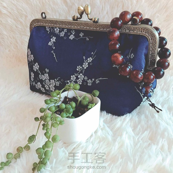 【口金包】蓝银梅花织锦缎子➕20cm古铜压花花苞头方形口金