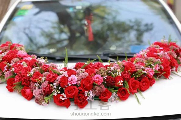 花车,热烈的红装饰着纯洁的白色婚车,让人仿佛置身婚礼现场