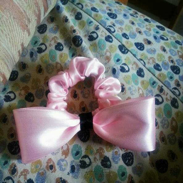 简单的缎带,手工缝制成发圈。 送给某个小萝莉的。