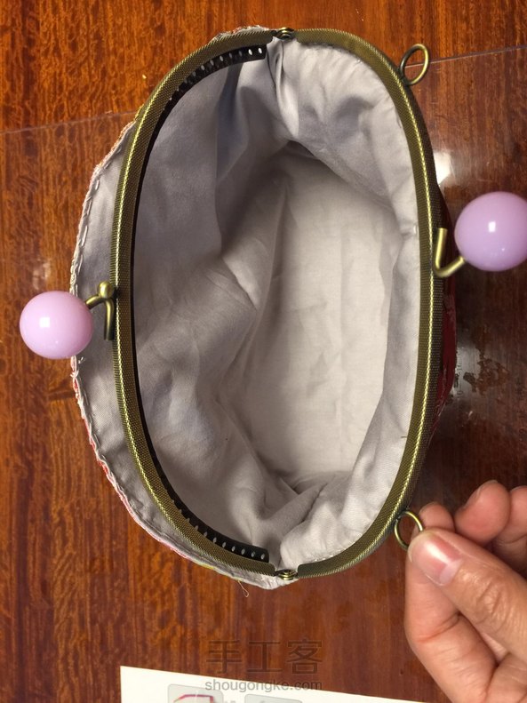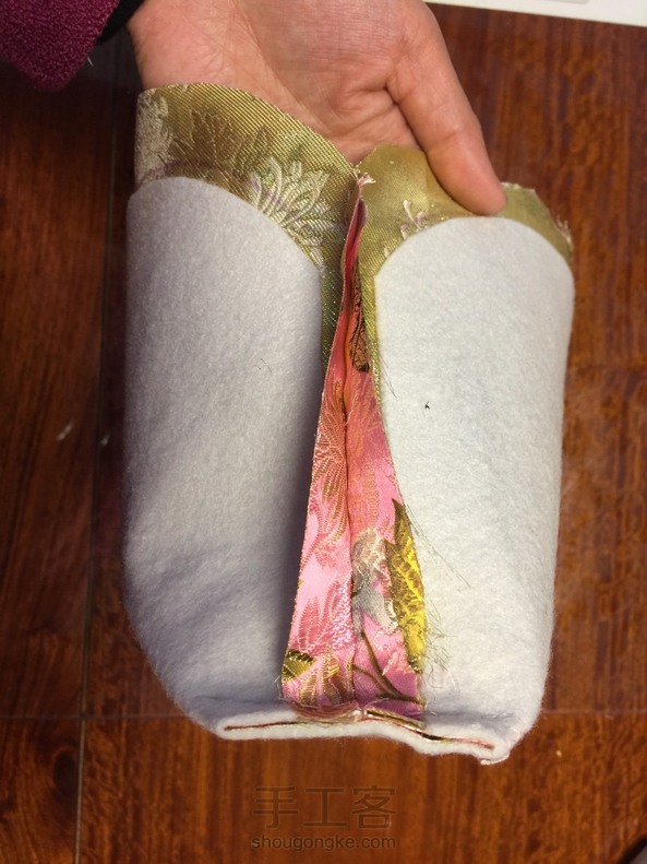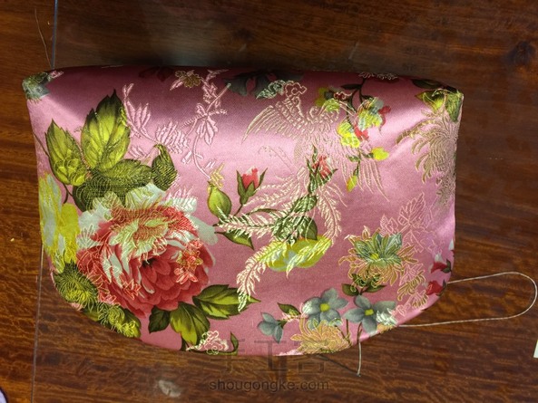 女儿要的粉色口金包,18厘米半圆。第一次发,不清楚流程,只能发九幅图,三片,表布烫好铺棉,反着缝三边并做好角,翻到正面,里布同样,不翻套在表袋外面,缝一圈缺六厘米翻出来,反口补好,用细鱼线从中间往两边上口金,再上另一边,搞定,纯手工,用时两小时。
