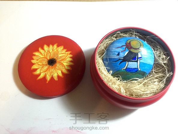 本来是不想把这幅石头画送出去的,因为是我画石头以来的第5幅,觉得画的不好,不过有点特殊情况所以勉为其难送出去了,可是时间匆忙没有好看的包装盒,只好把家里收到的喜糖盒改造一番,看起来好像有质感了许多![强]