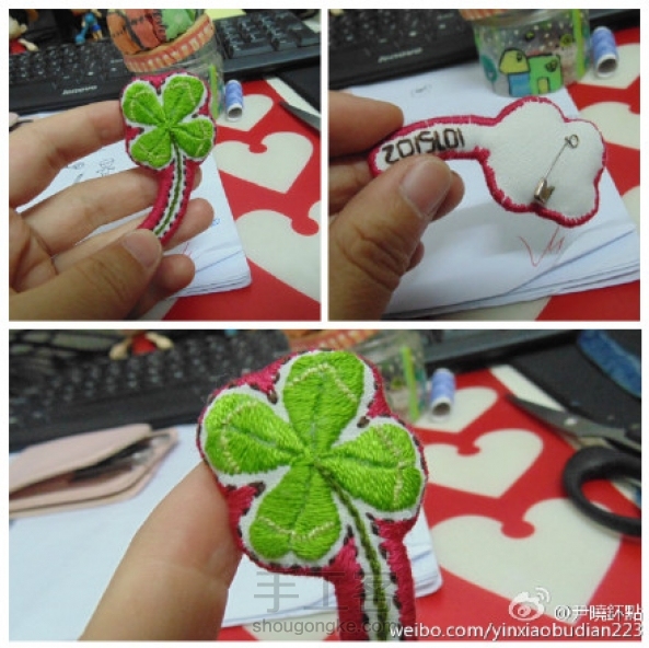 第一次手工刺绣胸针···四叶草哟,