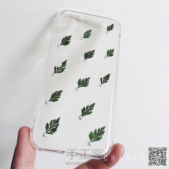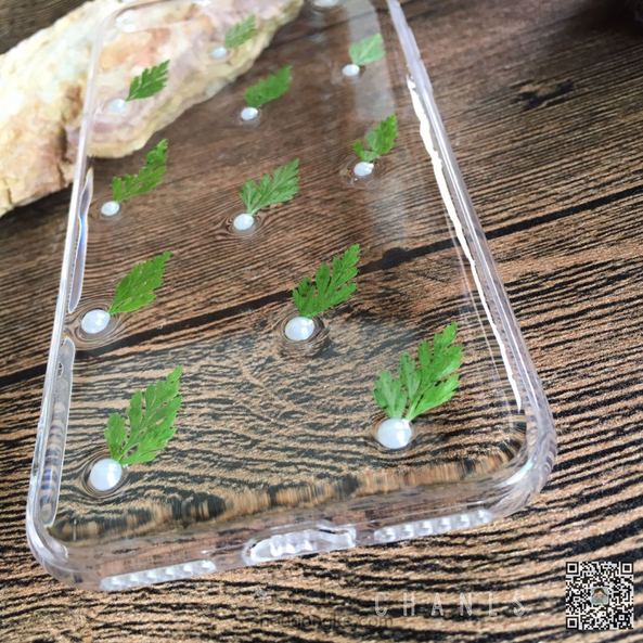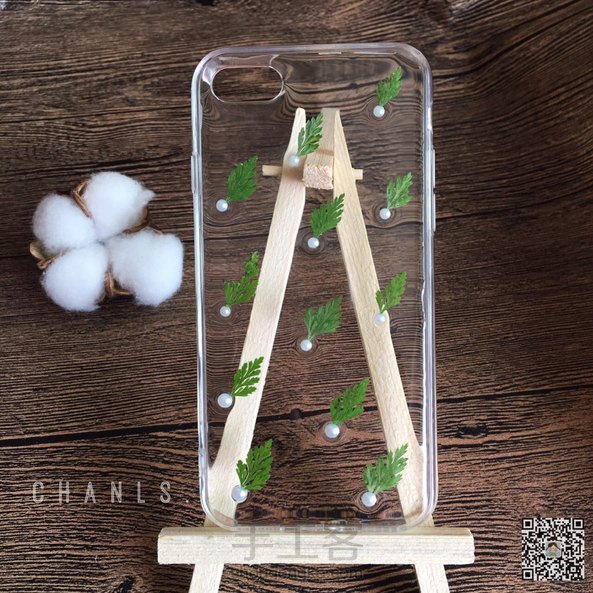 🌸干花手机壳,小清新很秀气的一款,小叶子加小珍珠点缀。纯手工干花定制